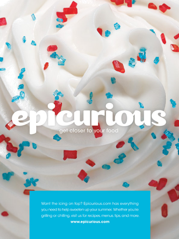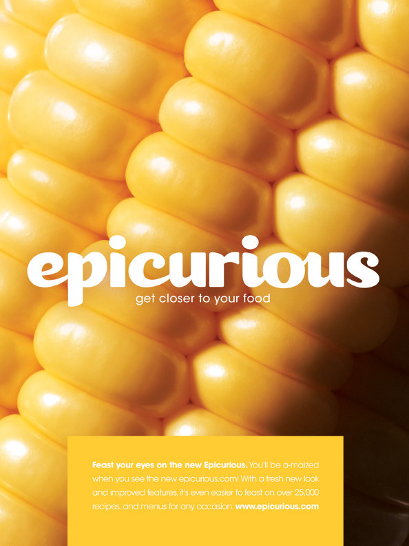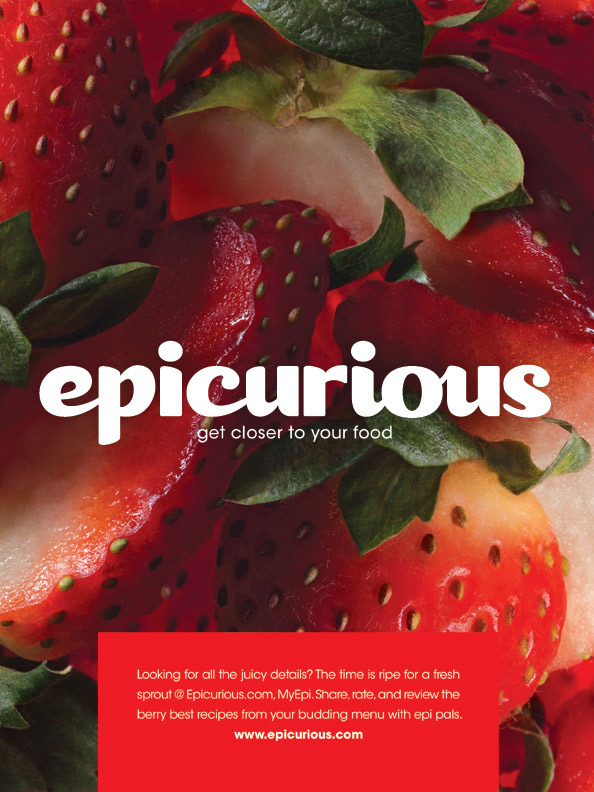 Logo redesign and ad campaign for Condé Nast's Epicurious brand. Epicurious is a website dedicated to recipes, cooking, drinking, entertaining, and restaurants; it is one of the most prominent and notable websites of its kind.