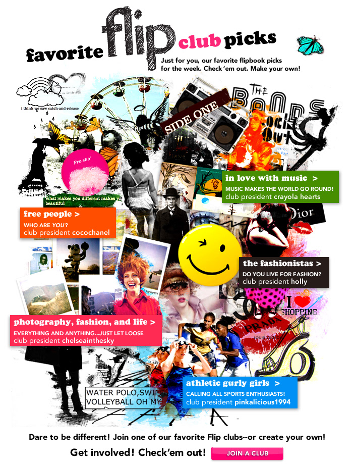Condé Nast’s, now defunct, flip.com was a social networking / scrapbooking site aimed at teenage girls. A subsidiary of Teen Vogue.